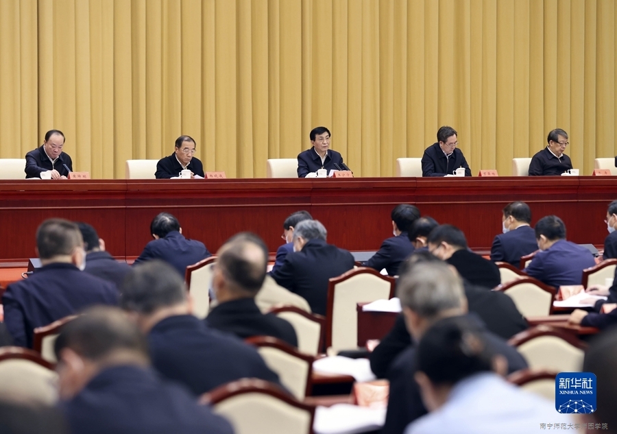 12月24日,党史学习教育总结会议在北京召开。中共中央政治局常委、中央书记处书记王沪宁出席会议并讲话。新华社记者 刘卫兵 摄