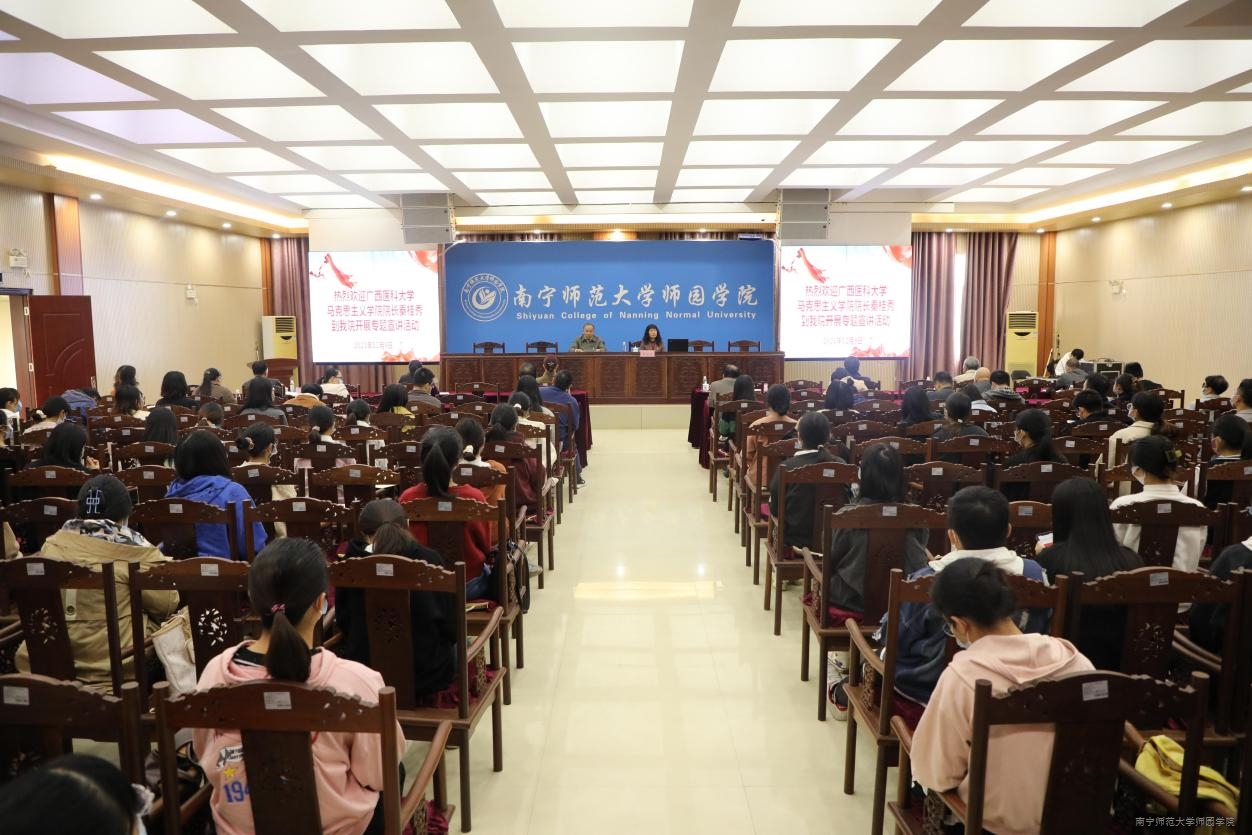 12月9日下午,我院在行政综合楼12楼第二报告厅开展学习贯彻党的十九届六中全会精神专题宣讲活动。自治区党委教育工委特聘专家教授、广西医科大学马克思主义学院院长秦桂秀应邀主讲。学院院长李珏,副院长庞俊、李德正、谢永新,教学总督导卢敏秋,中层领导干部及各党总支书记,各党支部书记,党员师生代表参加宣讲活动。活动由梁春贤书记主持。