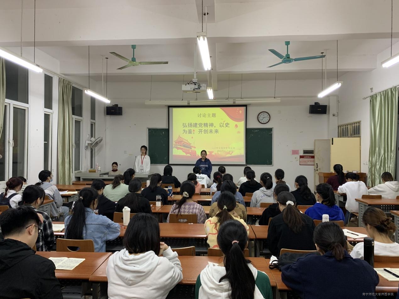会上,中文系学生党支部63名发展对象分别就近期思想变化及培训课程学习心得、感想作汇报,同时围绕“弘扬建党精神,以史为鉴,开创未来”作主题发言。