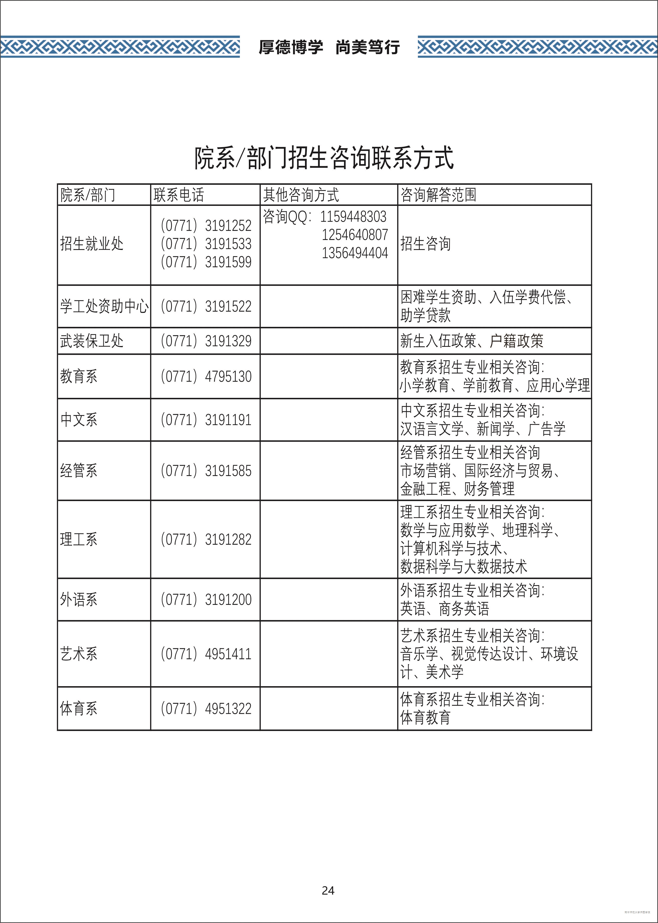 院办电话(传真):0771-5663192 招办电话(传真) 0771-3191599 就业办公室电话:0771-3191599