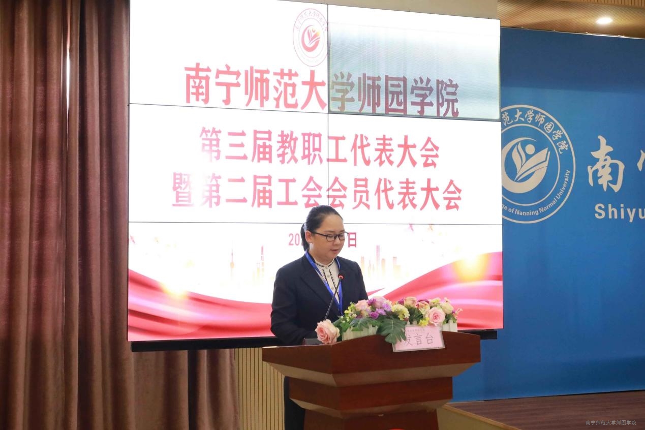 计财处处长韦丽华作学院财务工作报告和经费预算报告