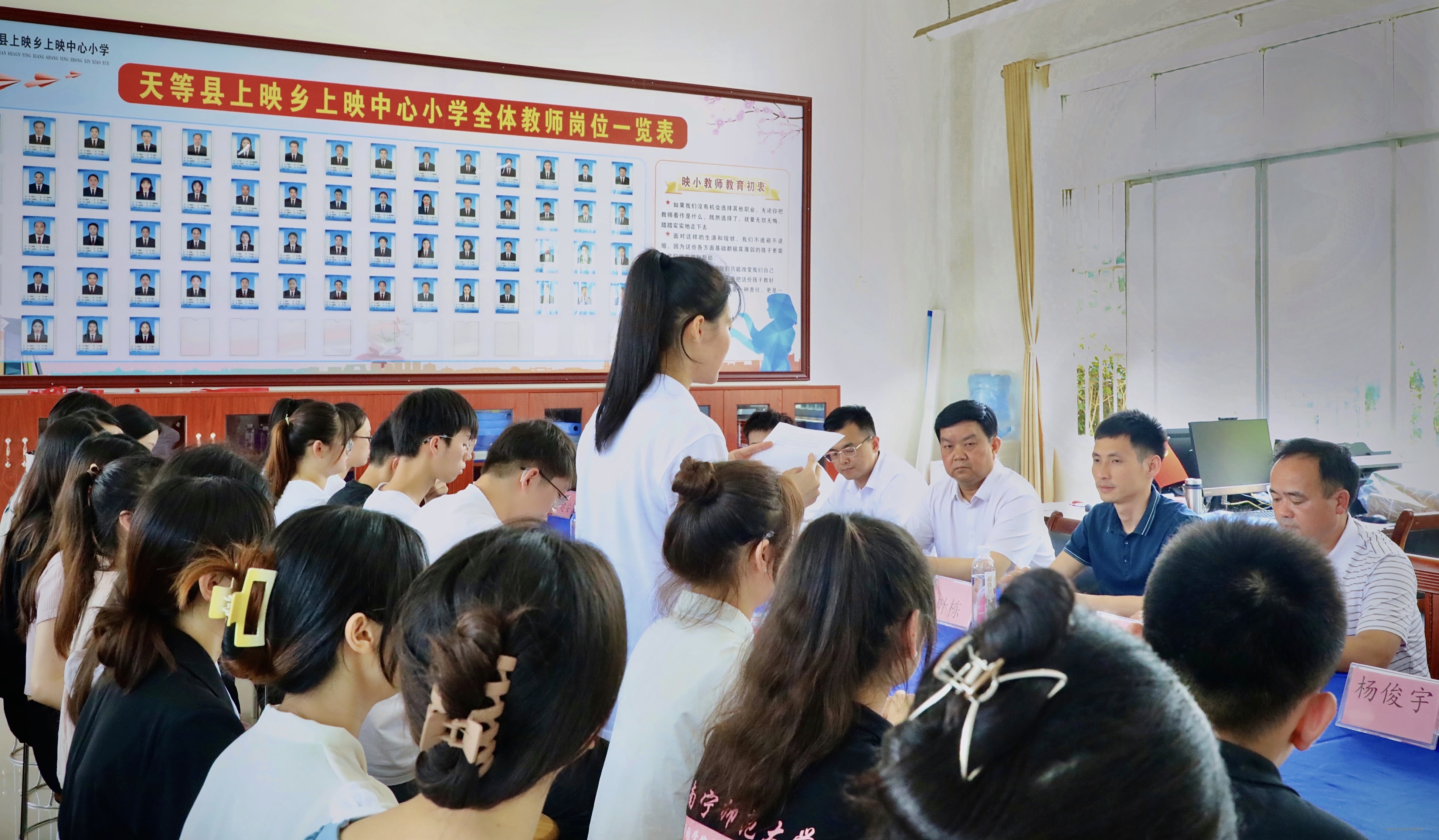 5月19日,学院党委副书记、常务副院长李剑喜带队赴天等县上映乡大学生社会实践志愿支教服务基地开展调研并召开志愿者座谈会。学生工作部、团委、体育系相关负责人及老师陪同调研。