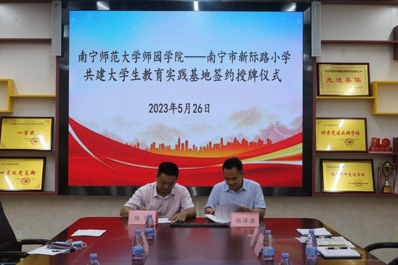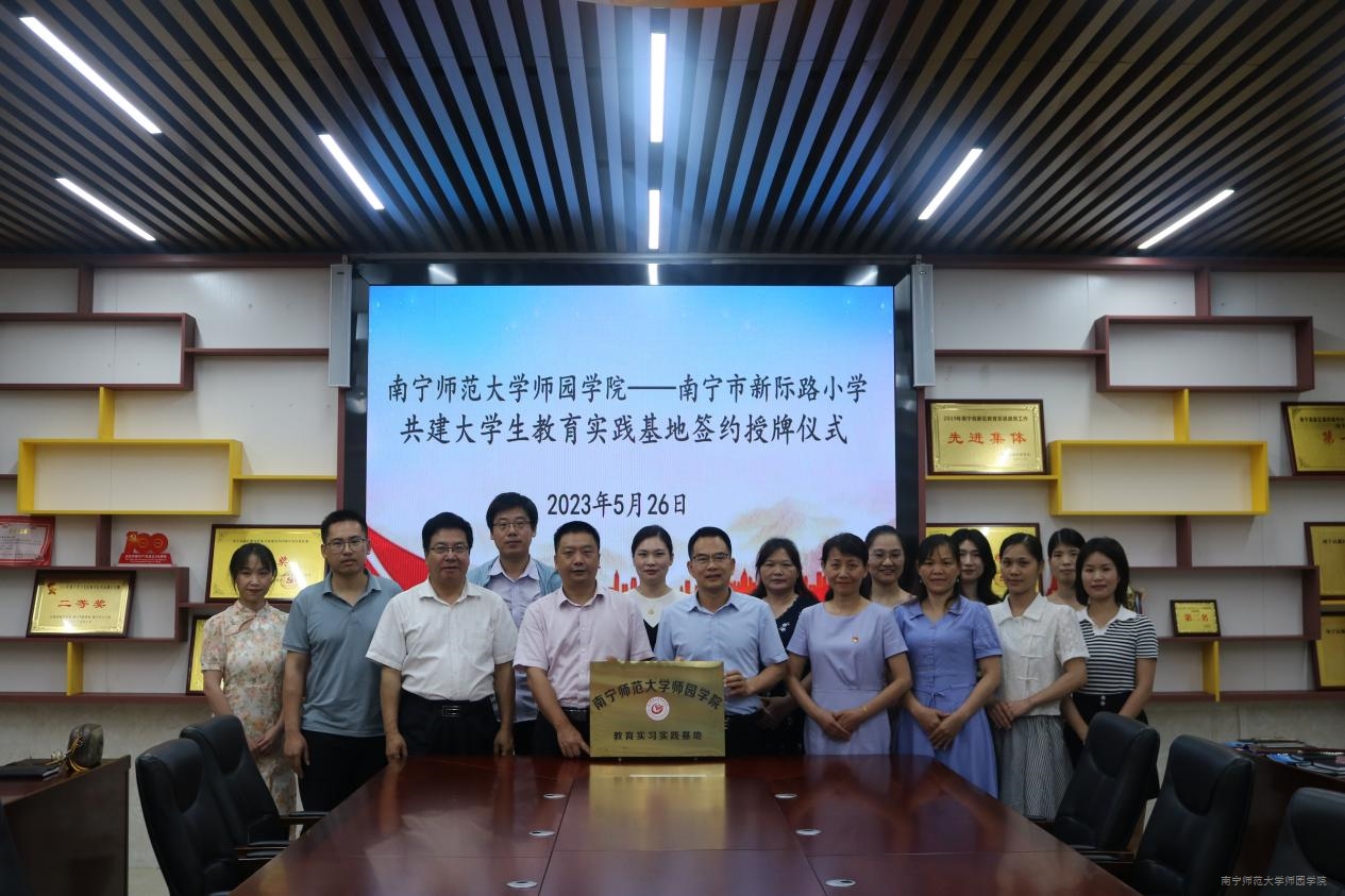 双方就合作事宜进行了交流和协商后,现场签订了教育实习实践基地合作协议,并举行授牌仪式,南宁市新际路小学正式成为我院教育实习实践基地。