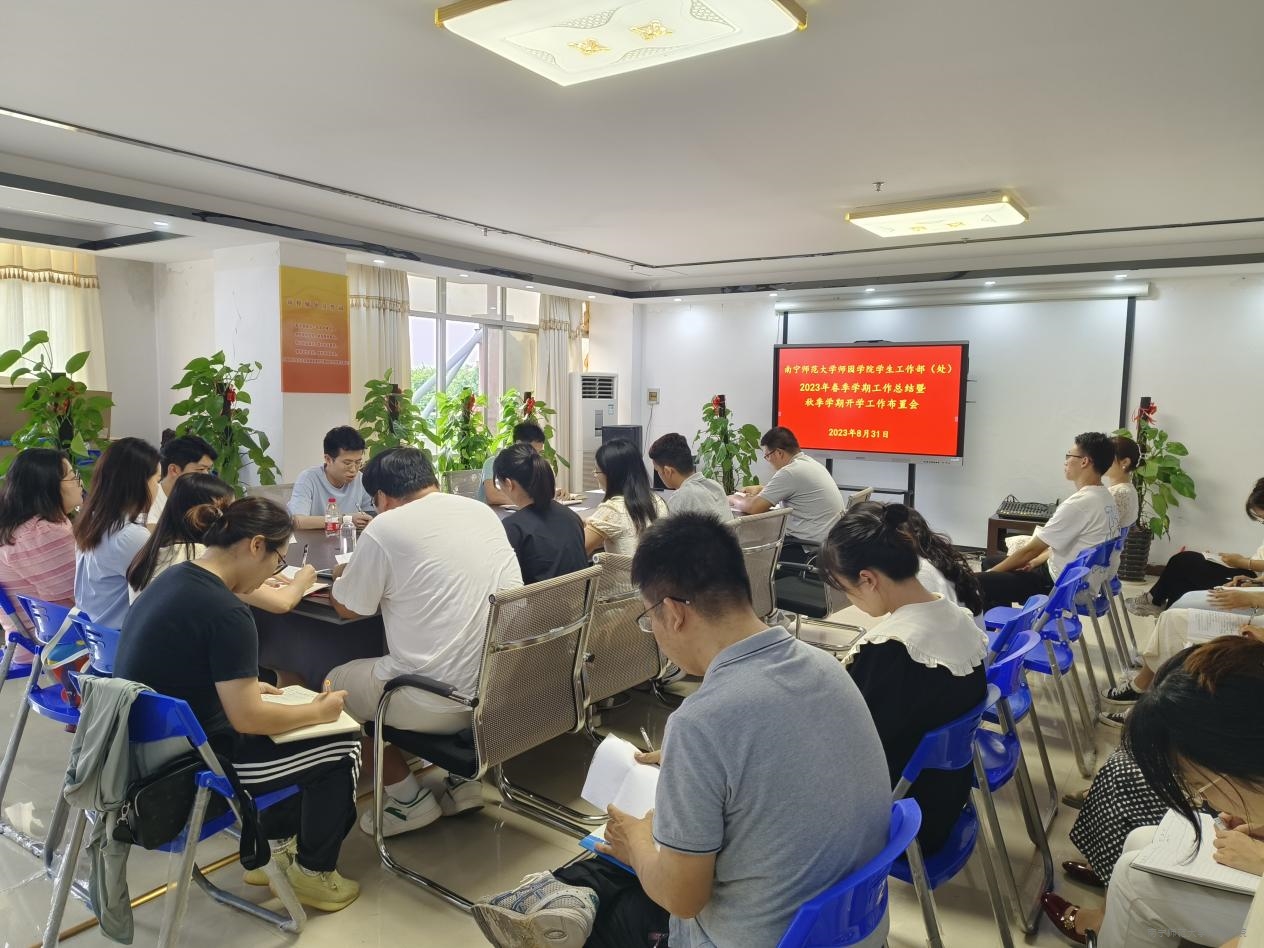 为总结2023年春季学期学生管理工作成效与经验,力争在新学期工作中取得新突破,以更饱满的热情、更扎实的作风和更有力的举措,切实做好新学期开学各项学生管理工作,9月1日下午,学生工作处在行政综合楼2楼202会议室召开2023年春季学期工作总结暨秋季学期开学工作布置会。学生工作处、院团委全体人员参加会议,会议由团委书记韦博文主持。