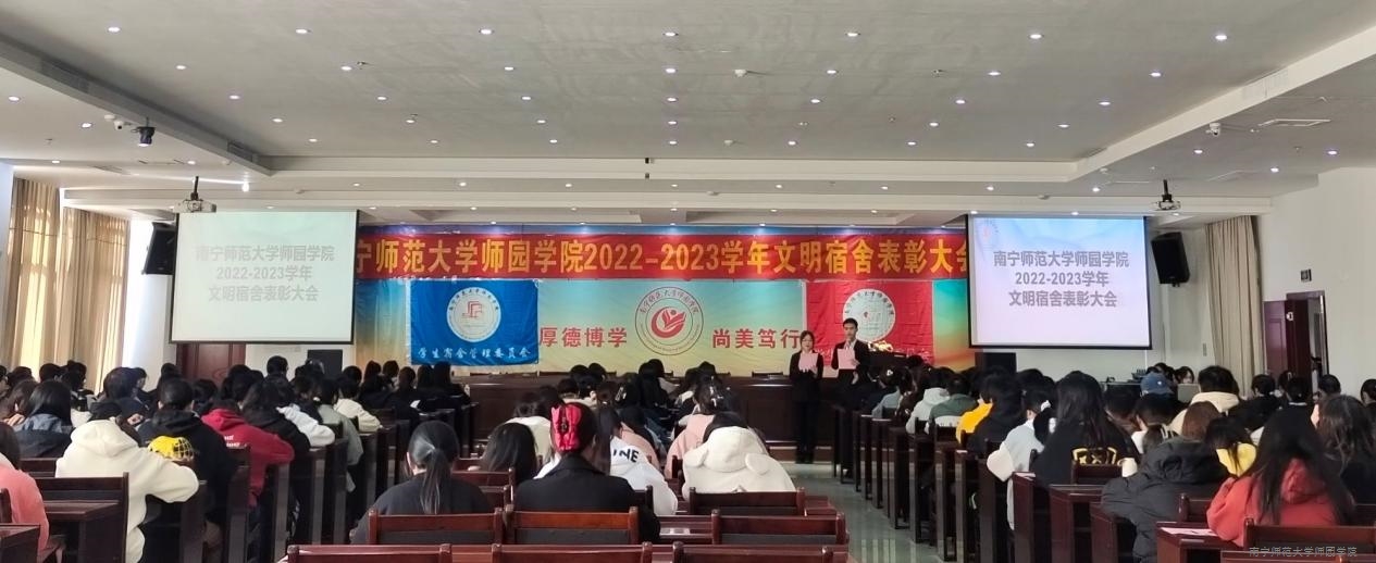 为进一步推进我院学生宿舍精神文明建设,加强学生宿舍管理,充分发挥宿舍文化在大学生成长成才过程中的育人功能,提升学生的文明素养,培养学生互助互爱、团结协作的精神,共同构建整洁卫生、安全舒适的学习生活环境。11月16日下午,我院在图书馆六楼第一报告厅举行2022-2023学年文明宿舍表彰大会。学生工作处、团委相关负责人,各系学工组组长、辅导员代表以及荣获2022-2023学年文明宿舍学生代表出席本次大会。