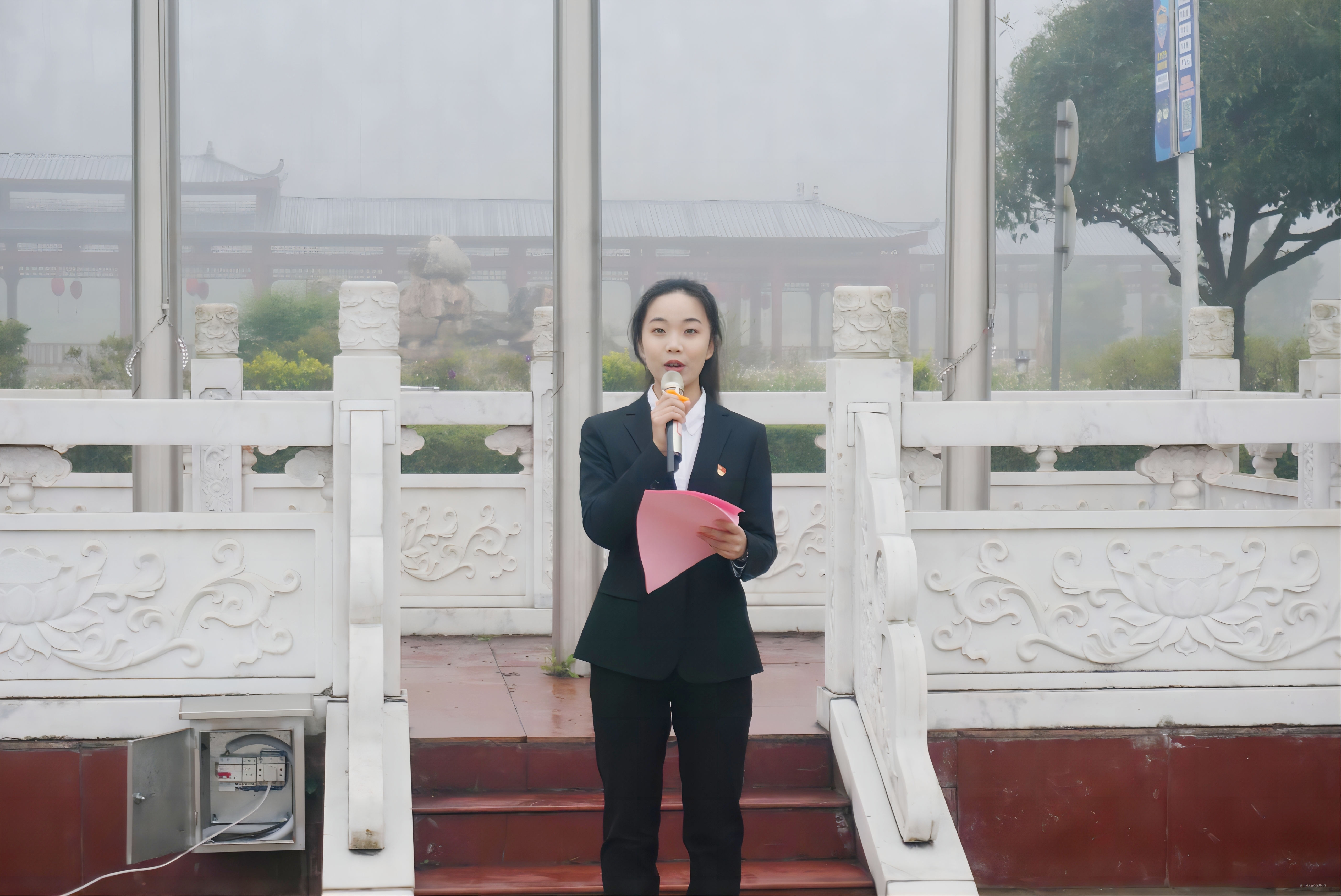 随后,学院团委学生副书记赵淑娟在国旗下倡议。她表示,新时代青年大学生要在党旗的指引下、团旗的号召下,把个人的“小目标”融入国家的“大蓝图”,倡议广大青年学生积极弘扬“厚德博学 尚美笃行”的师园精神,把人生梦想汇入时代洪流,以奋勇前进的姿态在新征程中不断开拓进取,努力为中华民族伟大复兴奉献青春力量。