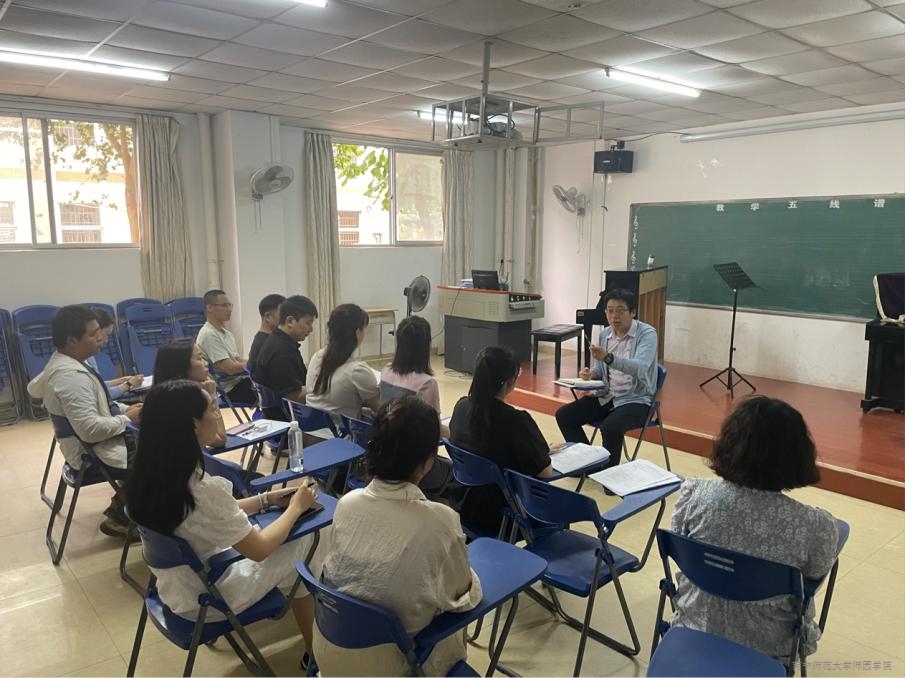 课后,在音乐教研室研讨活动环节,各教师一致认为小组教学更有利于提高音乐实践训练课程的教学效率。随后,与会教师还就如何优化小组课授课进行了深入交流探讨,群策群力共同推动教学质量提升。