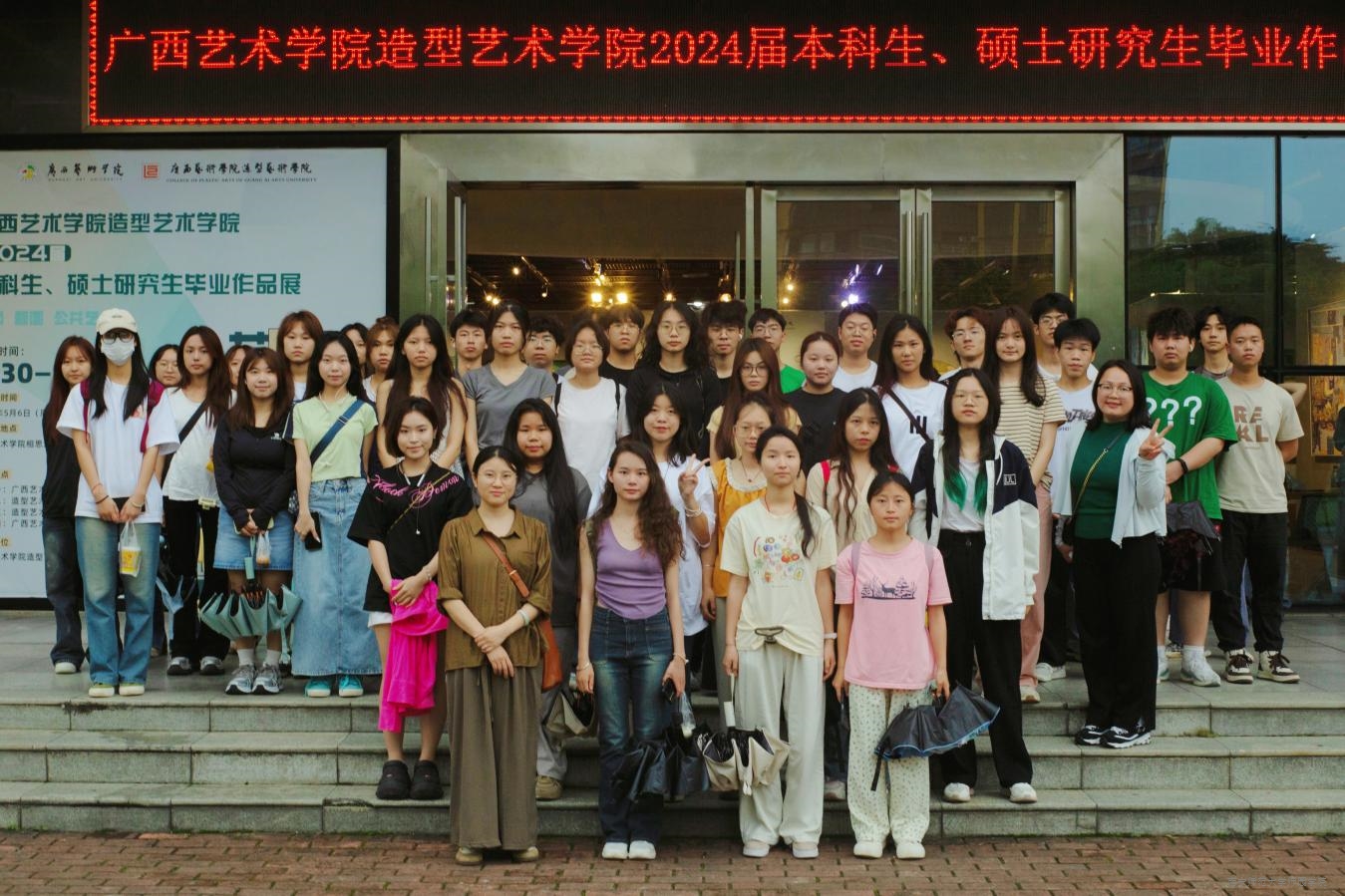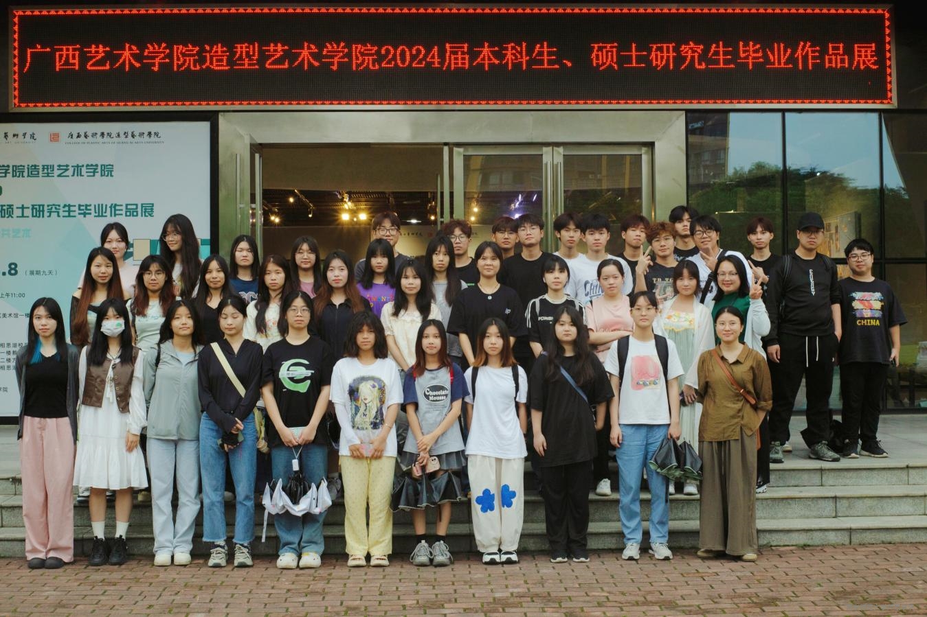本次调研活动由盘子榕、韦慧媛老师带队,带领学生赴广西艺术学院相思湖校区美术馆展厅参观造型艺术学院2024届学生的毕业作品展。此次展览展示了广西艺术学院毕业生们的优秀作品,涵盖了雕塑、壁画、公共艺术设计三个领域专业毕业生的作品。我院艺术系学生在参观过程中深受启发,不仅领略到了不同艺术形式的魅力,还对专业知识有了更深入的理解,进一步提升专业素养和设计理念。通过与作品的近距离接触,同学们感受到了创作者的用心和创意,也对自己未来的专业发展有了更多的思考。