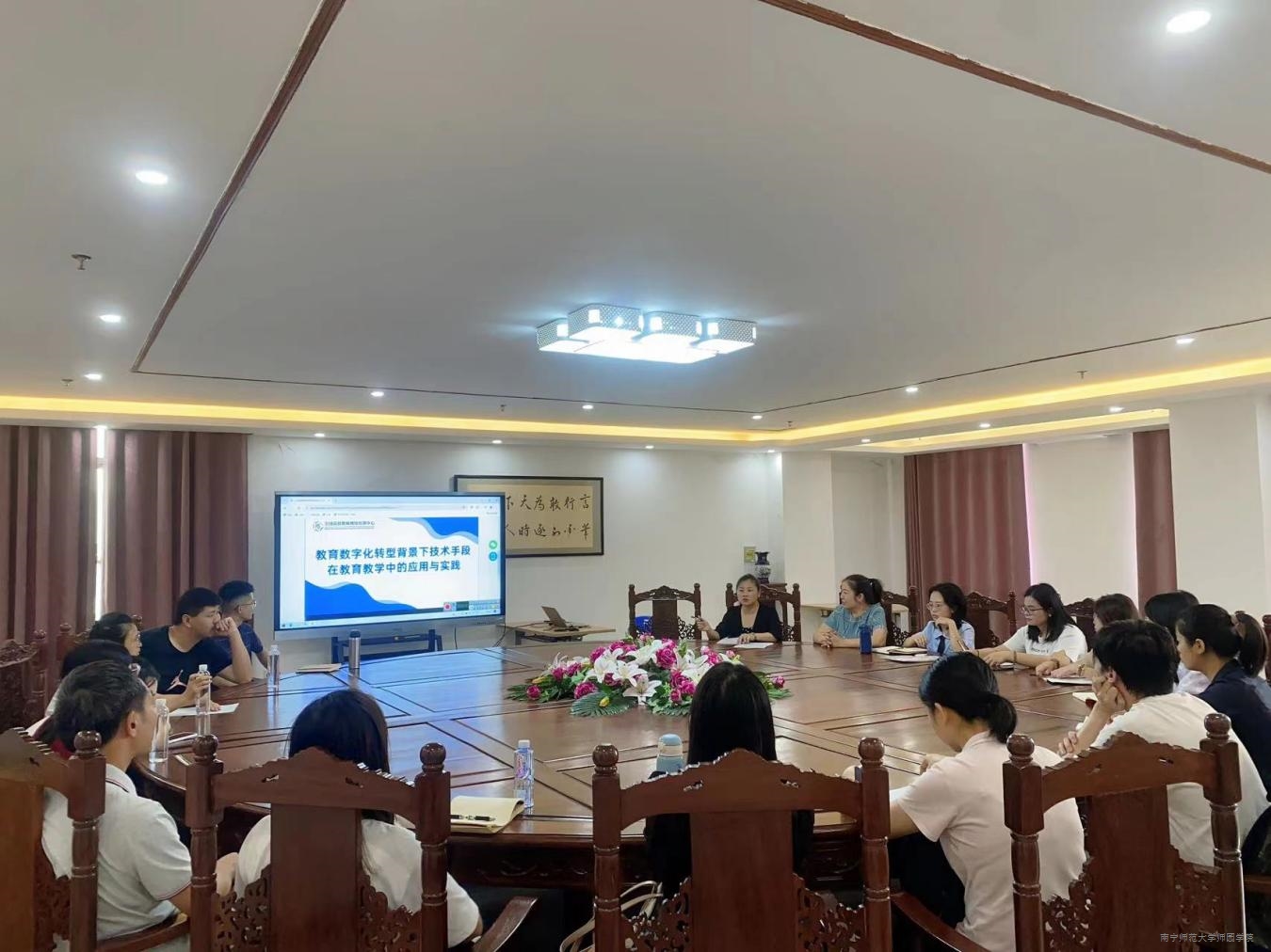 讲座中,杨九民教授以教育数字化背景为切入点,阐述了数字化融入教学的重要性并分析讲解了教学设计的概念、层次和模式,让全体与会人员对数字化背景下的教学设计有了更明确、具体的认识与理解。他指出教学设计落地的关键环节是要运用适当的教学内容、目标、方法、模式和评价。随后,杨九民教授结合大量具体教学案例就如何做好教学设计进行讲解,详细分析了在开展教学设计工作时应注意的事项和重点内容,并鼓励教师们将数字技术运用于教学实践中进行差异化教学和个性化学习。杨九民教授的讲座内容丰富、条理清晰,具有较强的实践性和指导性,让我院青年教师充分感受到了数字化教学的魅力,有效激发了青年教师对教学设计的强烈兴趣,为推动我院教育教学改革创新具有重要意义。