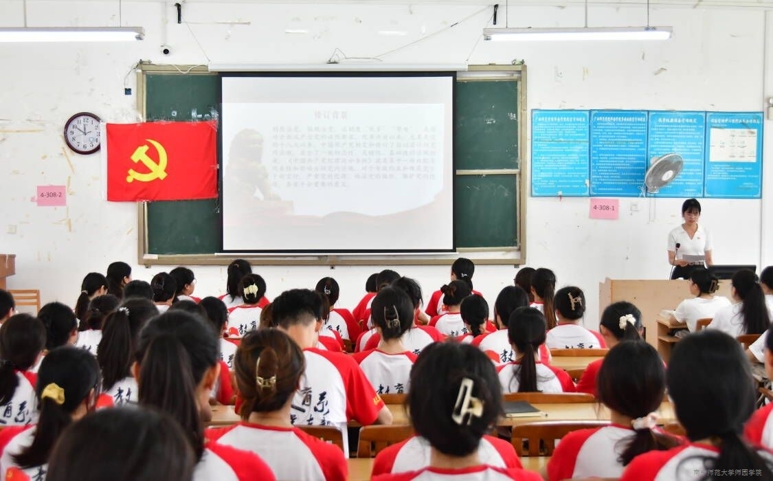 为持续推进党纪学习教育,引导学生党员学纪、知纪、明纪、守纪,用党规党纪校正思想和行动,提高学生党员队伍整体素质,6月20日中午,教育系学生党支部在教学楼4-308教室召开党纪学习教育专题党课。教育系小学教育学生党支部书记林春梅同志作《学纪知纪明纪守纪,为系部高质量发展提供坚强纪律保障》主题授课。教育系学生党支部全体学生党员参加党课学习。