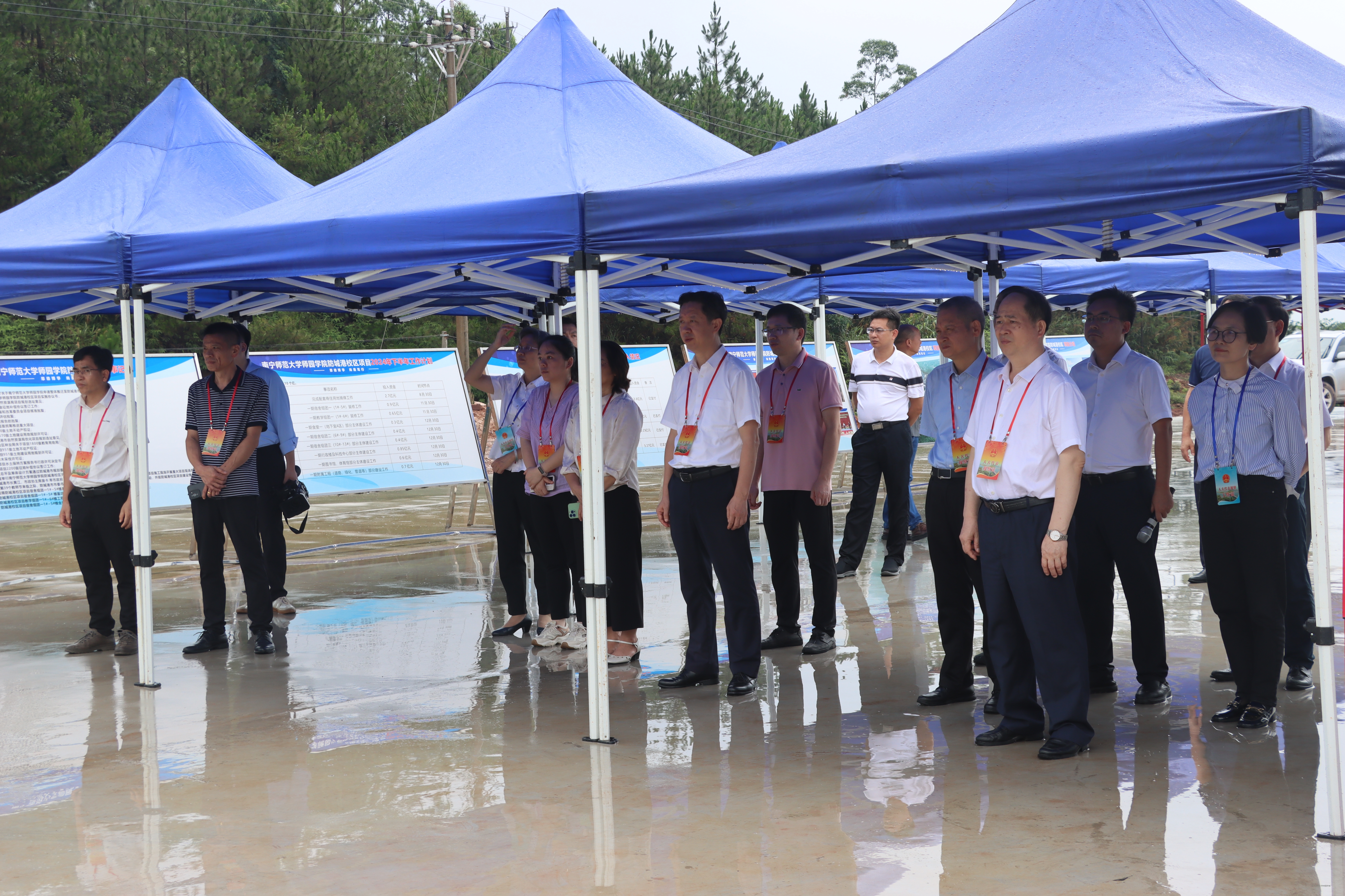 为全面贯彻落实党的二十大和二十届二中全会精神,深入学习贯彻习近平法治思想、习近平总书记关于坚持和完善人民代表大会制度的重要思想,学习贯彻习近平总书记关于广西工作论述的重要要求,6月21日上午,受自治区人大常委会委托,防城港市人大常委会组织在桂部分全国人大代表和自治区人大代表到我院防城港校区项目施工现场调研。