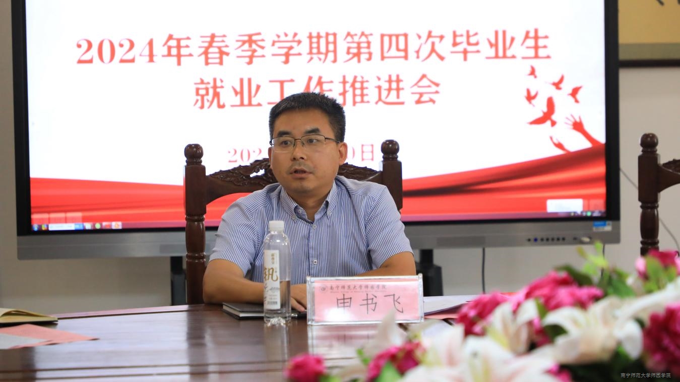 为进一步联动做好我院2024届毕业生就业指导服务工作,提升毕业生就业质量,7月10日上午,学院在行政综合楼1002会议室召开2024年春季学期第四次毕业生就业工作推进会。学院副院长申书飞,人事处、计财处、学工处、招生就业处及各系负责人,毕业生辅导员参加会议。会议由申书飞副院长主持。