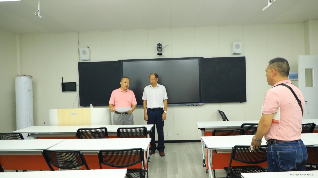 当天上午,尹文嘉院长、梁春贤书记一行先后实地走访检查了教学楼、图书馆、食堂、风雨球馆、商铺、东大门、南大门等场所,重点检查教学场所环境、教学设备运行和实验室管理,实地查看暑期校园升级改造工程建设成效和检查用电安全、消防安全、食品安全、环境卫生等方面是否存在安全隐患以及师生生活物资储备是否充足等。检查现场,尹文嘉院长、梁春贤书记充分听取了各部门对所负责区域的工作汇报并现场协调办公,要求各部门做实做细各项保障工作,不断提升服务水平,为师生营造安全舒适的工作、学习、生活环境。