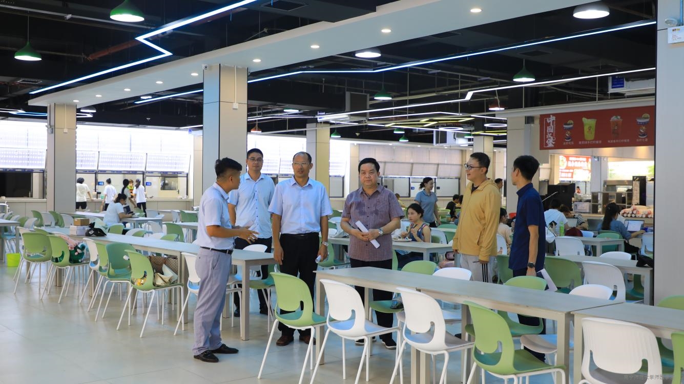 当天下午,尹文嘉院长、李剑喜常务副院长一行先后实地走访了新生接待大本营、食堂、新生宿舍等地,详细了解新生注册的场地安排、校园氛围营造、食材物资采购、新生宿舍环境卫生等情况。检查现场,尹文嘉院长、李剑喜常务副院长充分听取了各部门对所负责区域的工作汇报并现场协调办公,优化调整新生接待工作的各项细节,并要求各部门重视学生需求,做实做细各项新生接待筹备工作,以浓厚的迎新气氛、用心用情、高质量的服务保障迎接2024级新生入学报到,全力为2024级新生营造平安健康、温馨和谐的校园氛围。