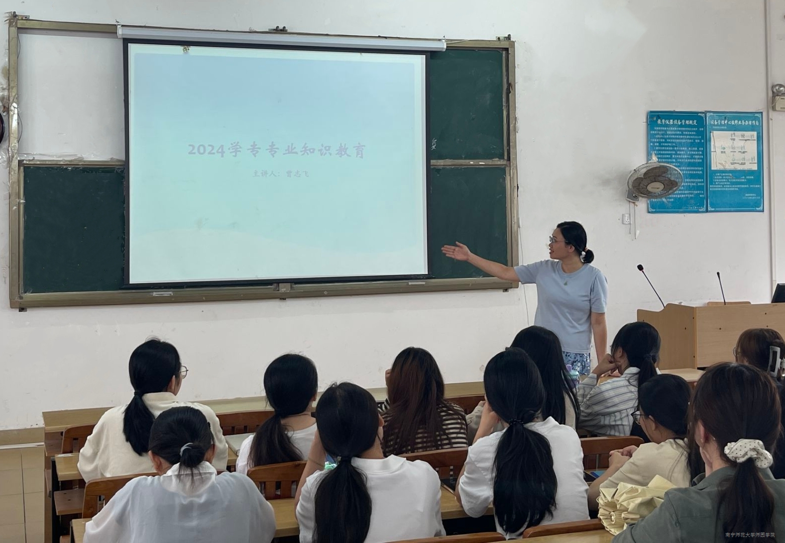 曾志飞主任重点围绕学前教育专业的就业前景、社会需求以及大学适应等方面,为新生提供了宝贵的建议。她鼓励新生们要尽快适应新环境,加强自我管理,并对自己所学专业保持浓厚的兴趣和坚定的信心。李正根主任则重点从应用心理学专业的人才培养目标、专业特色、课程设置、未来就业方向等方面进行了全面详细地介绍,希望同学们能够享受快乐而充实的大学生活,坚持自律,以更高标准严格要求自己。林文飞主任通过回顾小学教育专业的发展历程、播放历届校友寄语等方式重点阐述了该专业的背景、广阔的就业前景和培养师范生教师情怀的重要性,激励同学们坚定信念,做好学习规划、明晰成长方向,努力提升自己的专业技能和综合素养。