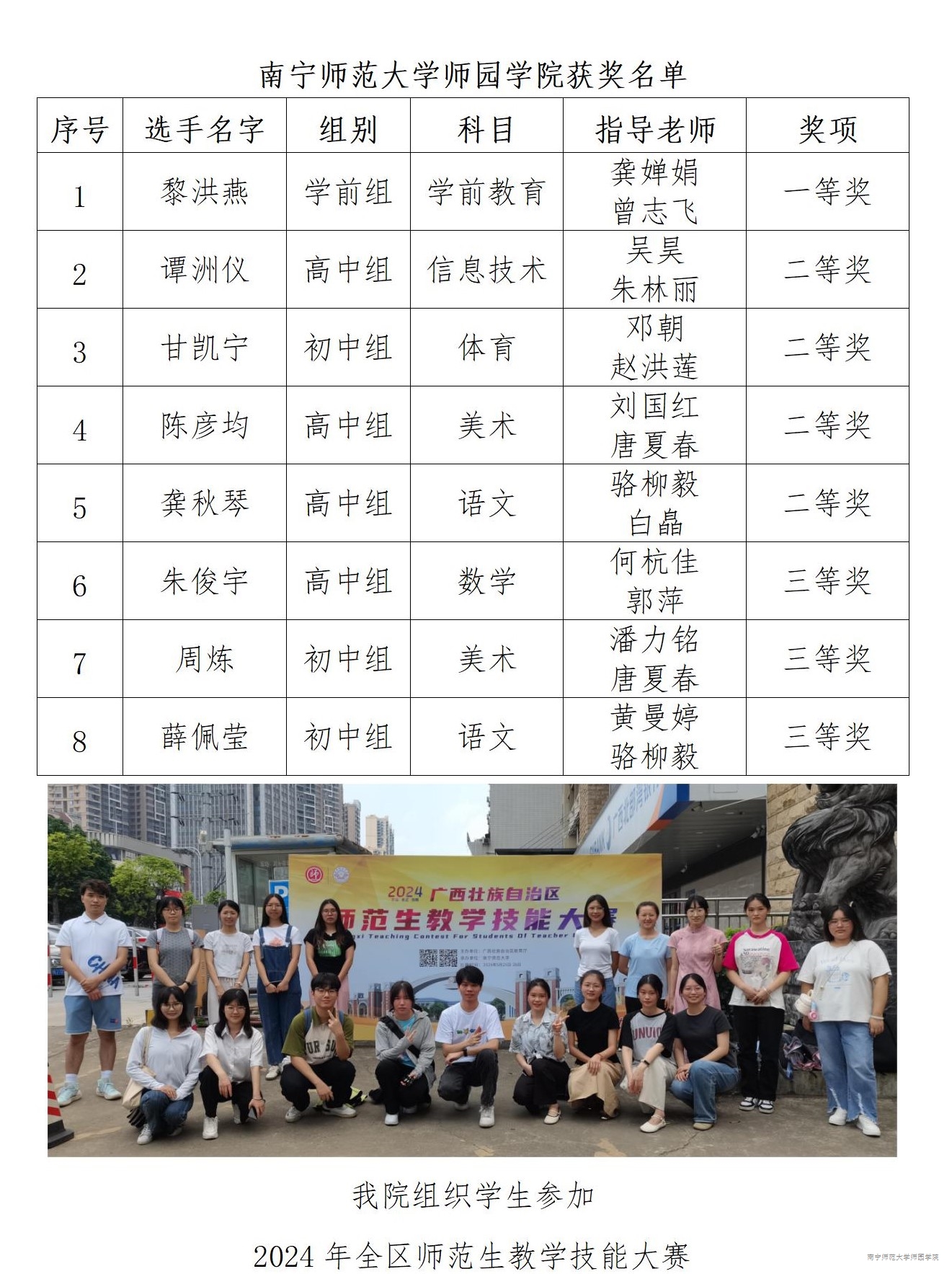 近日,自治区教育厅公布了2024年全区师范生教学技能大赛获奖名单,我院学生在大赛中荣获一等奖1项、二等奖4项、三等奖3项的好成绩。