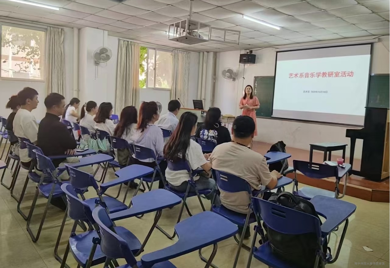 10月18日下午,艺术系音乐学教研室在15栋101教室召开“个性化反馈与精准提升”专题研讨会。艺术系主任韩聪与音乐教研室全体老师参会,会议由教研室主任吕富莲主持。