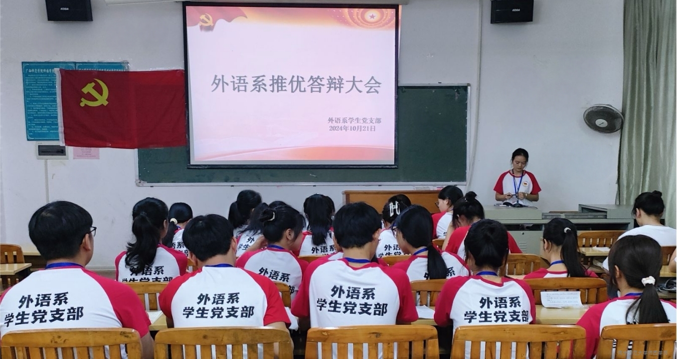为进一步加强学生党员队伍建设,保证党员发展质量,增强党支部活力,10月21日晚,外语系学生党支部在教学楼3-307教室召开2024年秋季推优入党答辩大会。外语系学生党支部书记林娇与全体学生党员、14名候选人参加会议。
