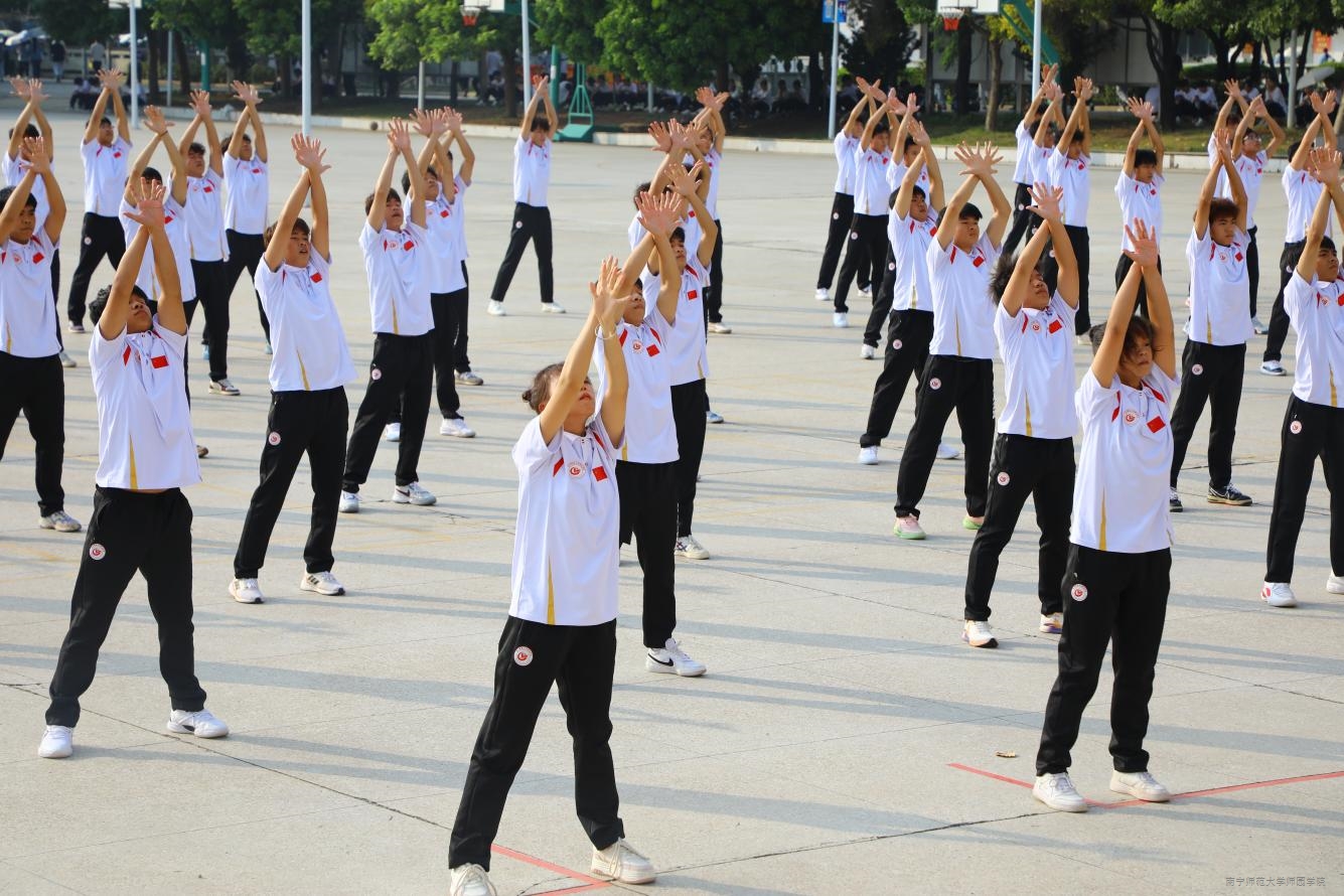 本次比赛分为甲组、乙组进行竞赛,比赛严格按照第九套广播体操图解说明进行评分。21支来自各教学单位的参赛队伍身着统一服装,精神抖擞、排列整齐,按照抽签排定的顺序依次入场比赛。同学们在比赛过程中,昂首挺胸地进行伸臂、扩胸、转体、踢腿、弯腰等动作,动作规范、步伐矫健、节奏精准,兼具美感与力量感,展现出良好的团队凝聚力和协作能力,呈现了新时代大学生的蓬勃朝气与青春活力。