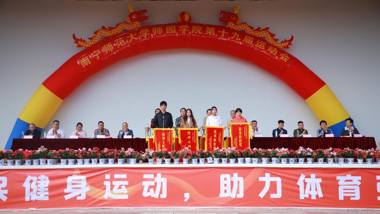本届运动会是一次团结、拼搏、奋进的盛会。参赛师生在赛场上的竞技精神,充分展现出顽强拼搏、永不言弃的精神风貌。经过激烈的角逐,理工系荣获甲组团体总分第一名,体育系2023级荣获乙组团体总分第一名。此外,外语系代表队、艺术系代表队获评“精神文明运动队”荣誉称号;体育系、经管系获评为“优秀组织奖”单位;赖丰胜等16名学生获评为“精神文明运动员”称号;蒋佳锦等24名学生获评为“优秀运动员”称号;李双燕等15名学生获评为“优秀裁判员”称号。学院领导依次为获奖系部、班级、运动员、裁判员颁发奖杯、奖状、锦旗,予以鼓励。