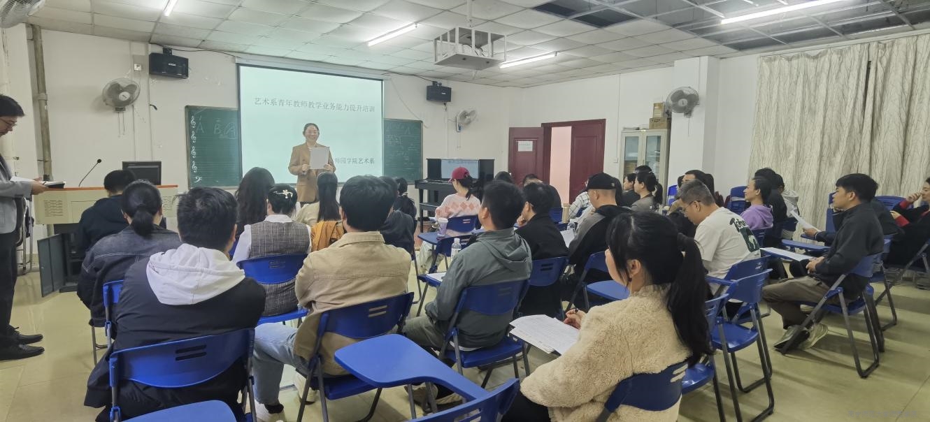 12月3日,艺术系在15-101教室召开青年教师教学业务能力提升培训会。艺术系全体教职工参加会议,会议由艺术系主任韩聪主持。