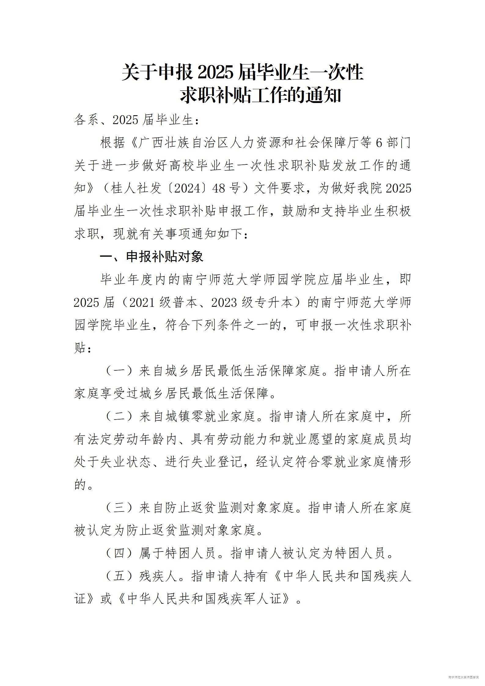 关于申报2025届毕业生一次性求职补贴工作的通知