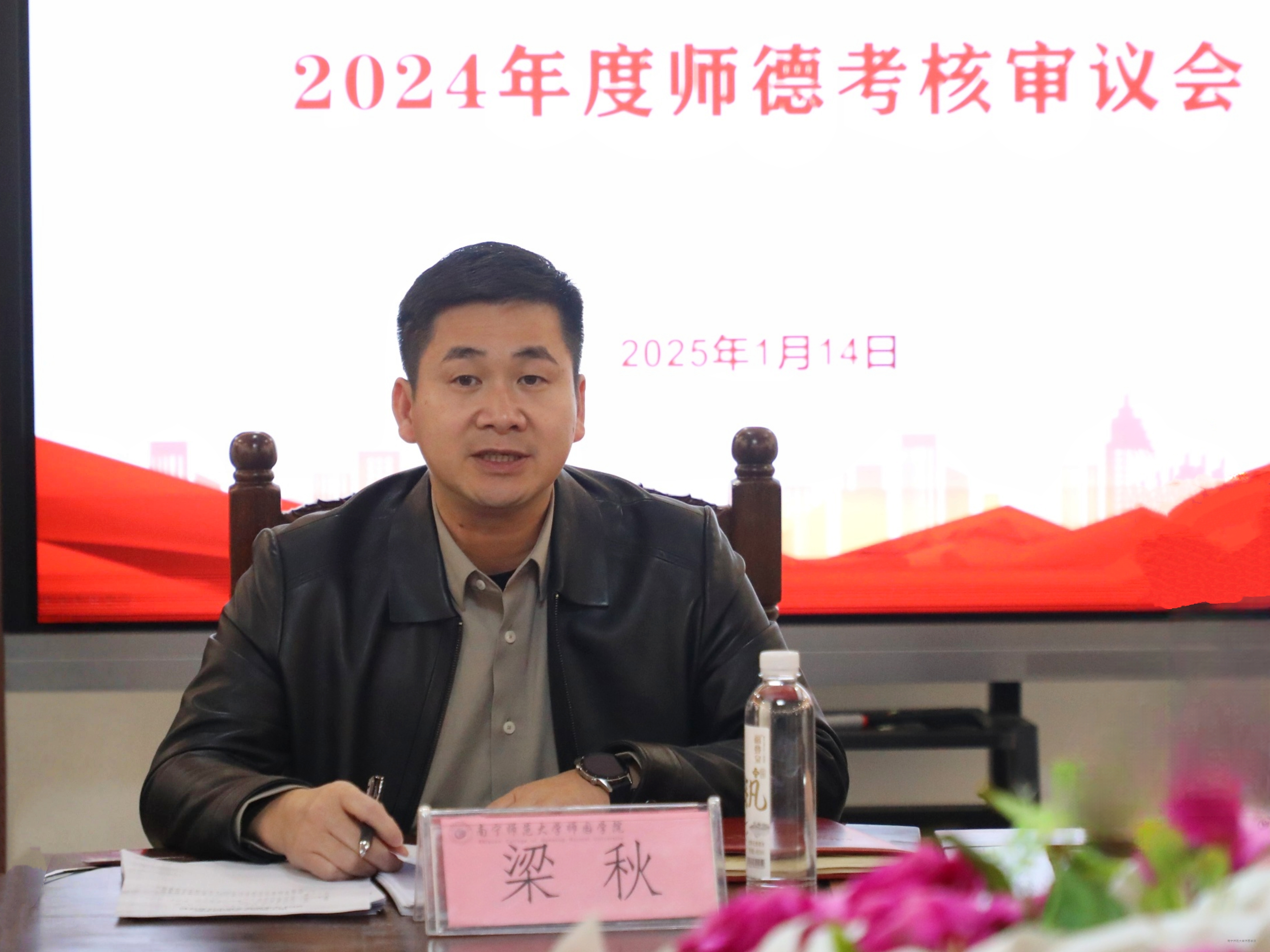会议伊始,梁秋充分肯定了2024年度师德建设工作,强调了师德在高校教育中的核心地位,是推动教育质量提升和学生全面发展的重要保障。随后,师德考核委员会听取和讨论了2024年度学院师德考核开展情况和教职工积极践行师德规范的先进典型。经过充分讨论、发表意见、审议并一致通过了学院2024年度师德考核结果。