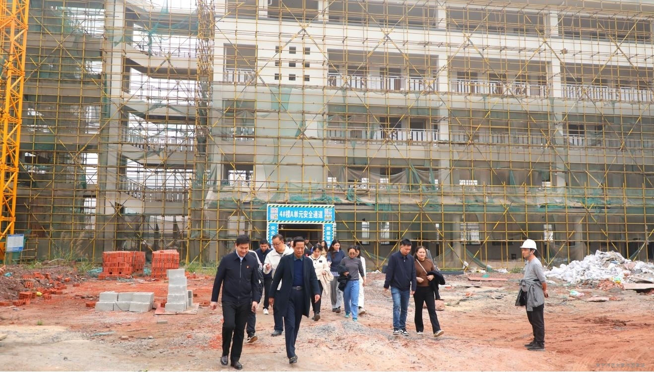 在防城港校区项目现场,学院领导干部、思政教师一行通过观看展板、宣传视频和聆听介绍的方式,了解学院防城港校区项目的项目规划、项目资金投入、2025年工作计划等方面情况。随后,深入建设一线,实地察看教学组团、宿舍组团、专家楼的施工进展与成效,增强推进学院发展的责任感和使命感。