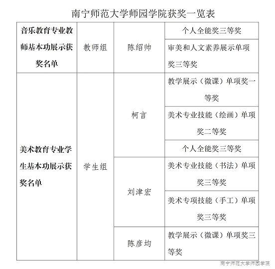 我院音乐学和美术学专业以培养音乐、美术教师为目的,突出专业应用型,我院将以此为契机,进一步提升音乐、美术教育人才培养的创新,为构建广西高校美育高质量发展新格局贡献师园力量。
