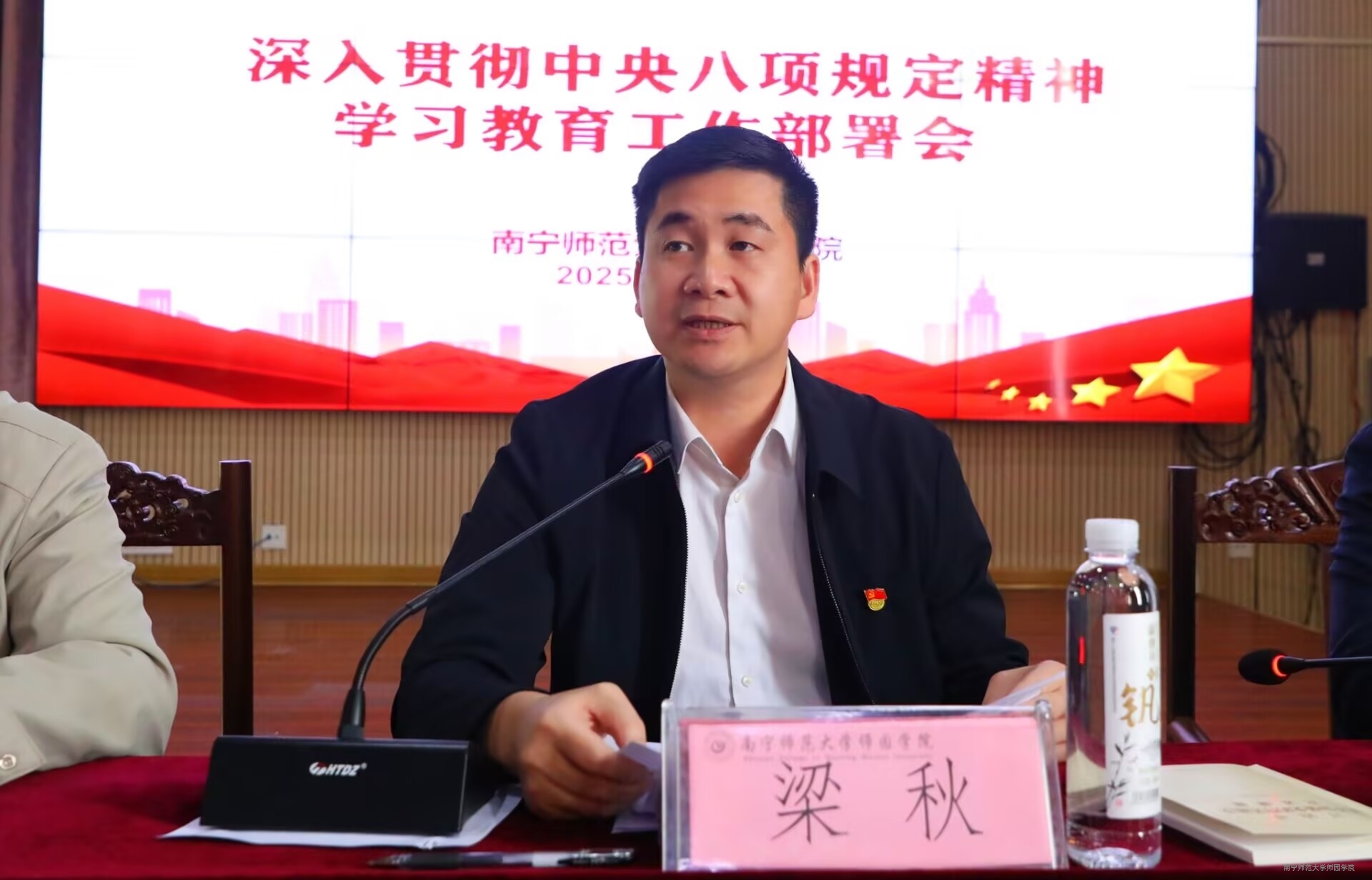 会上,梁秋副书记带领与会人员学习习近平总书记关于加强党的作风建设的重要论述和中央八项规定及其实施细则精神,并传达上级有关学习教育文件精神,同时对学院开展学习教育工作进行部署。他指出,开展此次学习教育,重点要做好以下四个方面工作:一是强化思想引领,筑牢作风建设根基;二是深入自查自纠,全面排查作风问题;三是完善制度体系,建立健全长效机制;四是加强监督执纪,严肃查处违规行为。