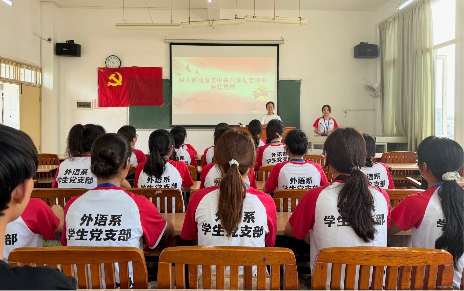 外语系学生党支部开展深入贯彻中央八项规定精神学习教育专题党课