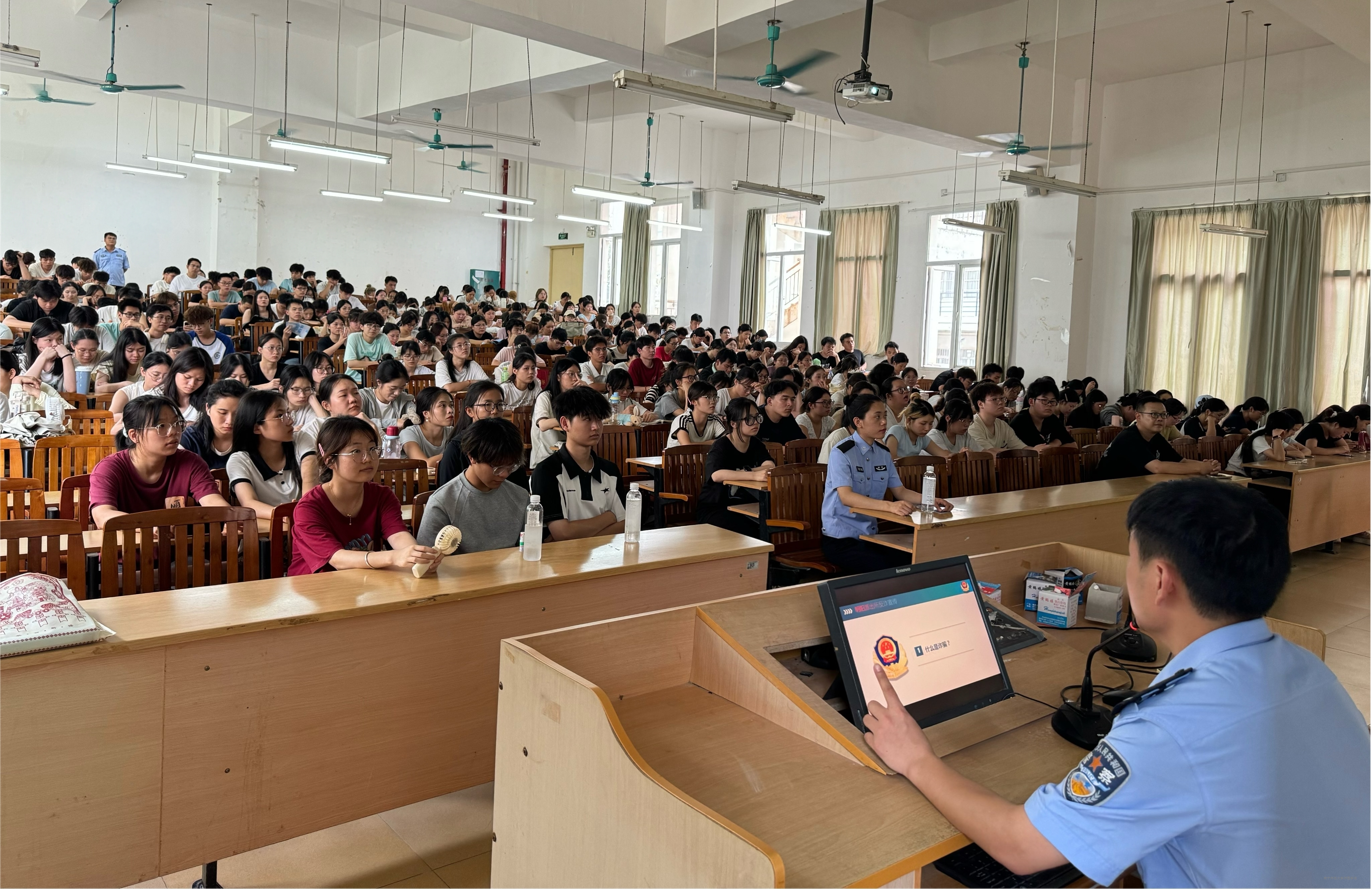 为进一步提升学生反诈意识,筑牢校园反诈防线,6月11日下午,我院在教学楼4-208教室开展防范电信网络诈骗专题宣讲活动。保卫处相关负责人、学工处相关负责人与2022级、2023级、2024级全体班长、副班长参加宣讲活动。讲座由明阳派出所民警田明政警官主讲。