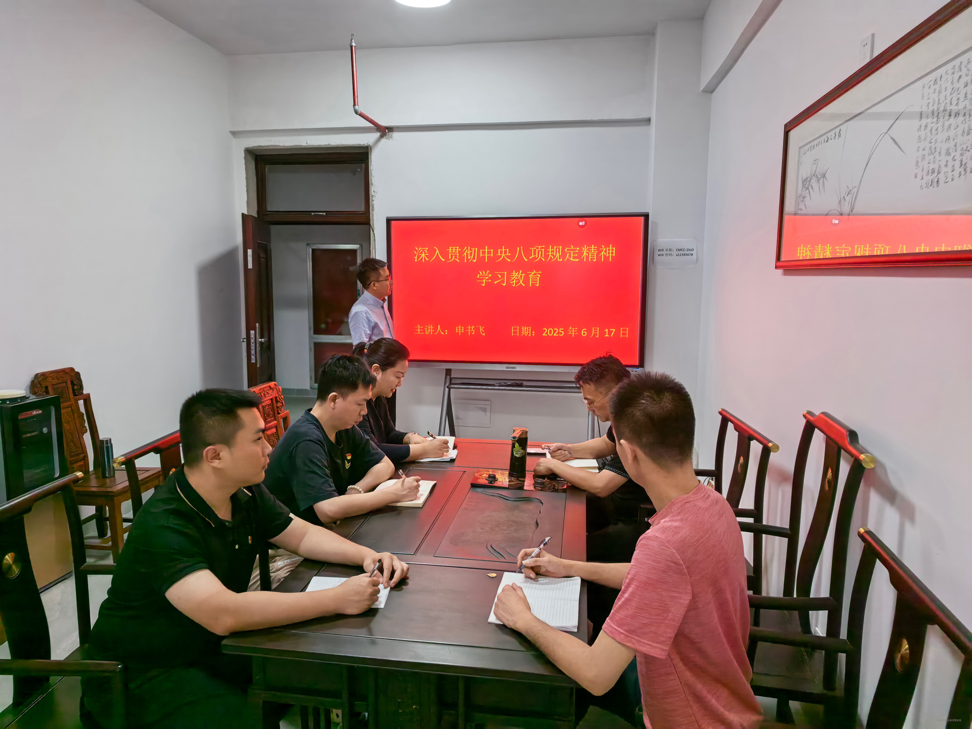 6月17日,为持续深化全面从严治党,进一步贯彻落实中央八项规定精神,增强党员干部廉洁自律意识,学院党委委员、副院长申书飞在防城港校区项目指挥部党员活动室讲授深入贯彻中央八项规定精神专题党课。防城港校区项目指挥部直属党支部全体党员参加学习。