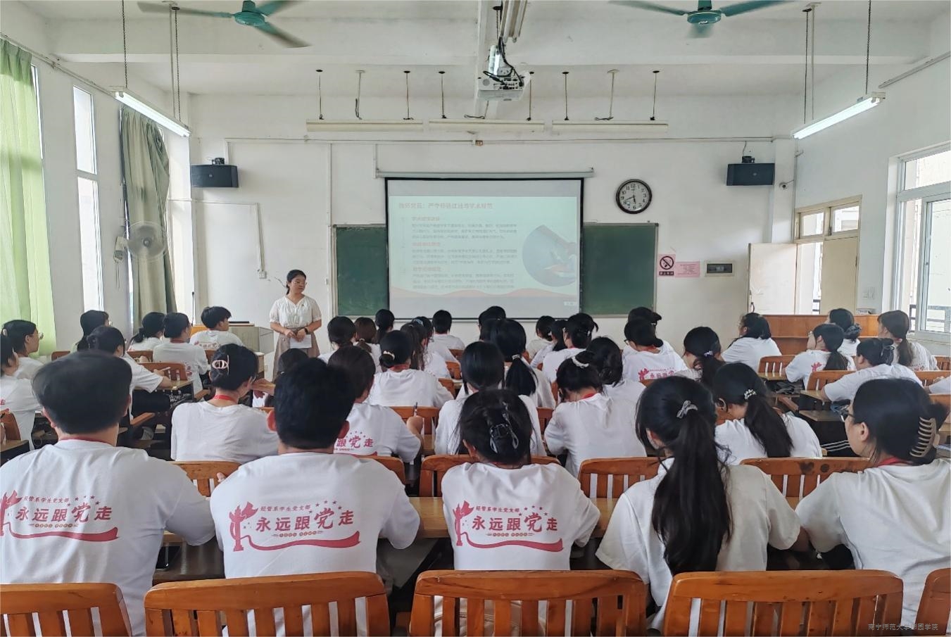 为贯彻新时代全面从严治党要求,强化高校党员纪律意识与作风建设,6月24日下午,经管系党总支在4-403教室开展深入贯彻中央八项规定精神学习教育专题党课。本次党课由经管系党总支书记李湘君主讲,作《以中央八项规定精神为引领 锻造新时代高校党员优良作风》专题授课,经管系全体党员师生参加党课学习。