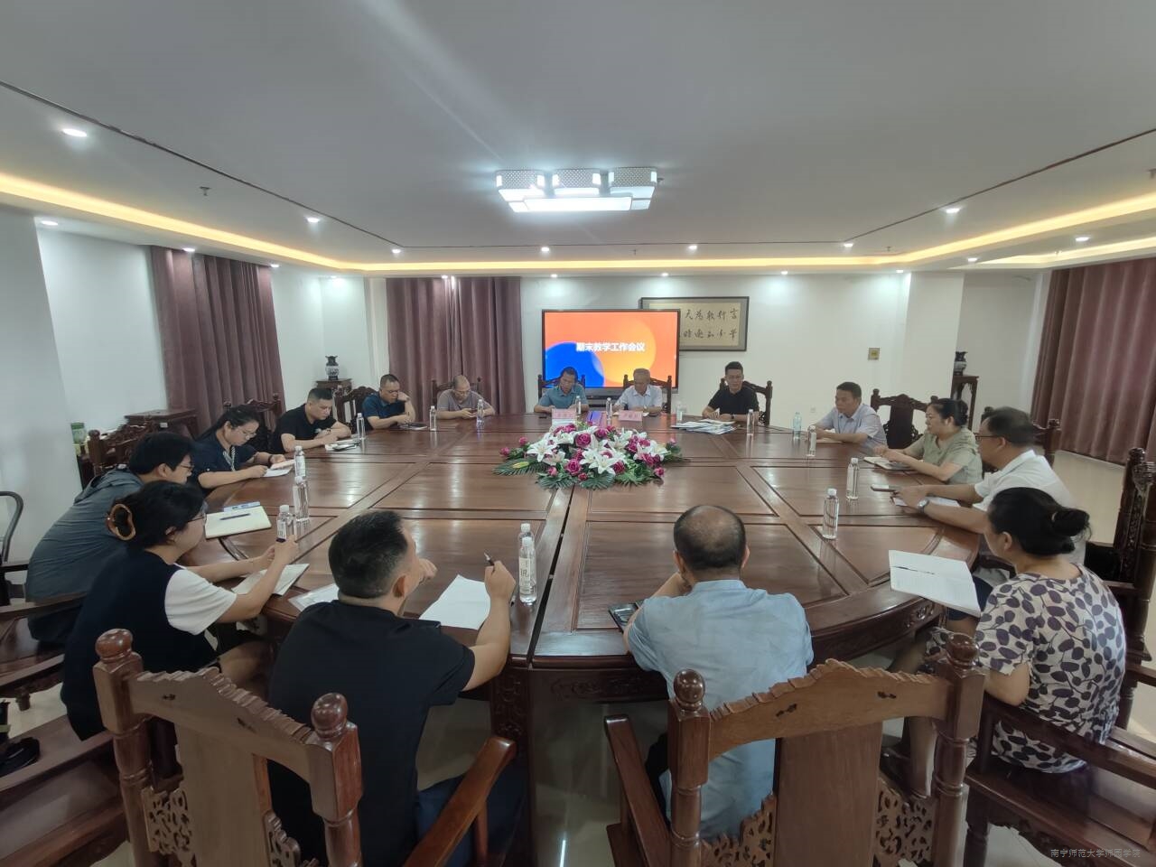 教务处处长卢洋通报了本学期教学工作情况,围绕教师请假、论文指导与审核、教材征订、排课安排、学籍异动及档案归档等方面作了说明,强调要加强过程管理,确保各项工作规范落实。