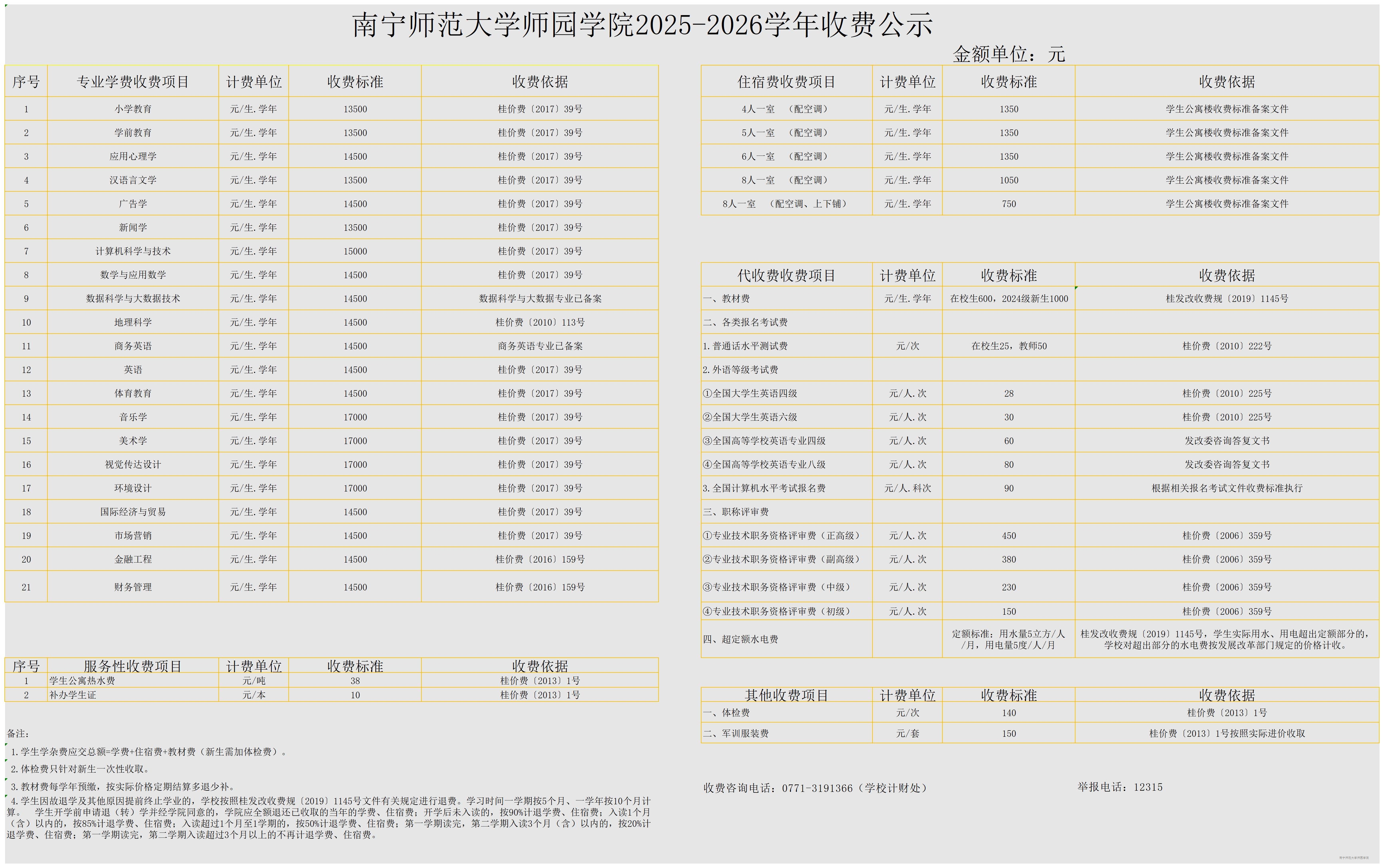 yabo鸭脖官网2025-2026学年收费公示