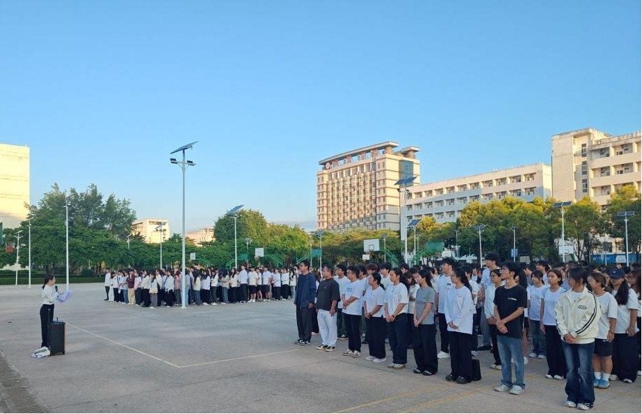 环境设计2501班学生代表黄丽莎在国旗下发表倡议,倡导全体同学要自觉把个人艺术理想融入国家发展,以红色基因滋养创作初心,用专业能力服务时代需要。
