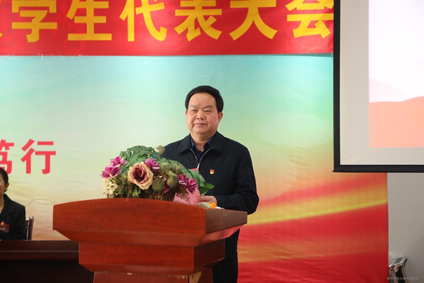 11月22日下午,yabo鸭脖官网第十次学生代表大会在图书馆六楼第一报告厅隆重召开。学校党委副书记、常务副校长李剑喜出席本次大会,党委学生工作部、团委负责人,各团总支书记,广西民族大学相思湖学院、广西职业技术学院、广西演艺职业学院学生代表以及学校139名学生代表参加本次会议。