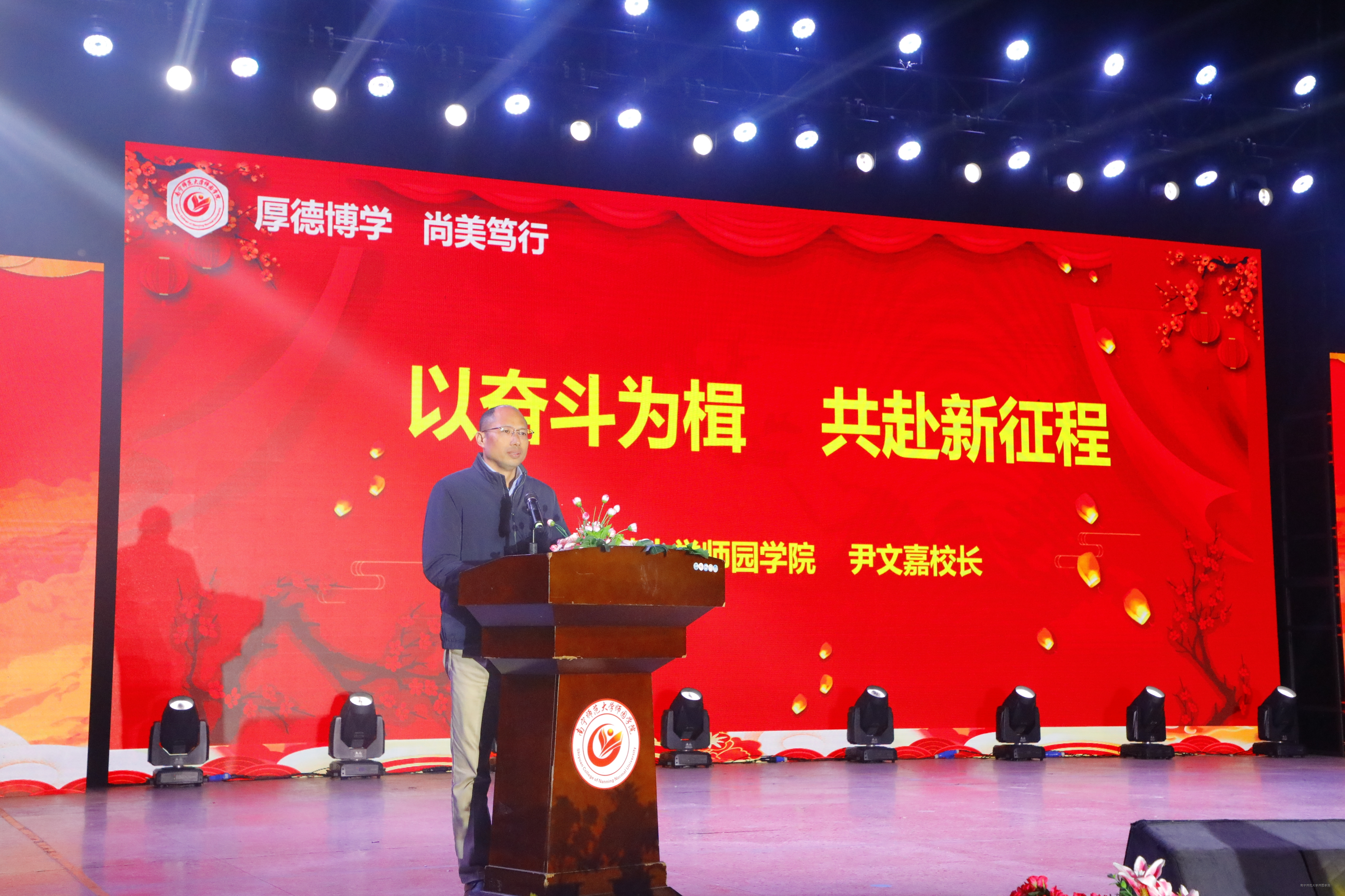 星汉辉映良夜,长风鼓荡新程。12月30日晚,鸭脖官网在升旗广场大舞台璀璨启幕“铸魂育人启新程,薪火相传向未来”2026年迎新晚会,一场融青春热血与艺术诗意的视听盛宴,在冬夜的师园里缓缓铺展画卷。学校董事长梁仲荣,党委副书记、校长尹文嘉,党委副书记梁秋(主持党委工作),党委副书记、常务副校长李剑喜,副校长申书飞,纪委书记、副校长庞俊,副校长李德正,教学总督导卢敏秋及全体中层干部、各系师生齐聚一堂,共赴这场辞旧迎新的美好之约。