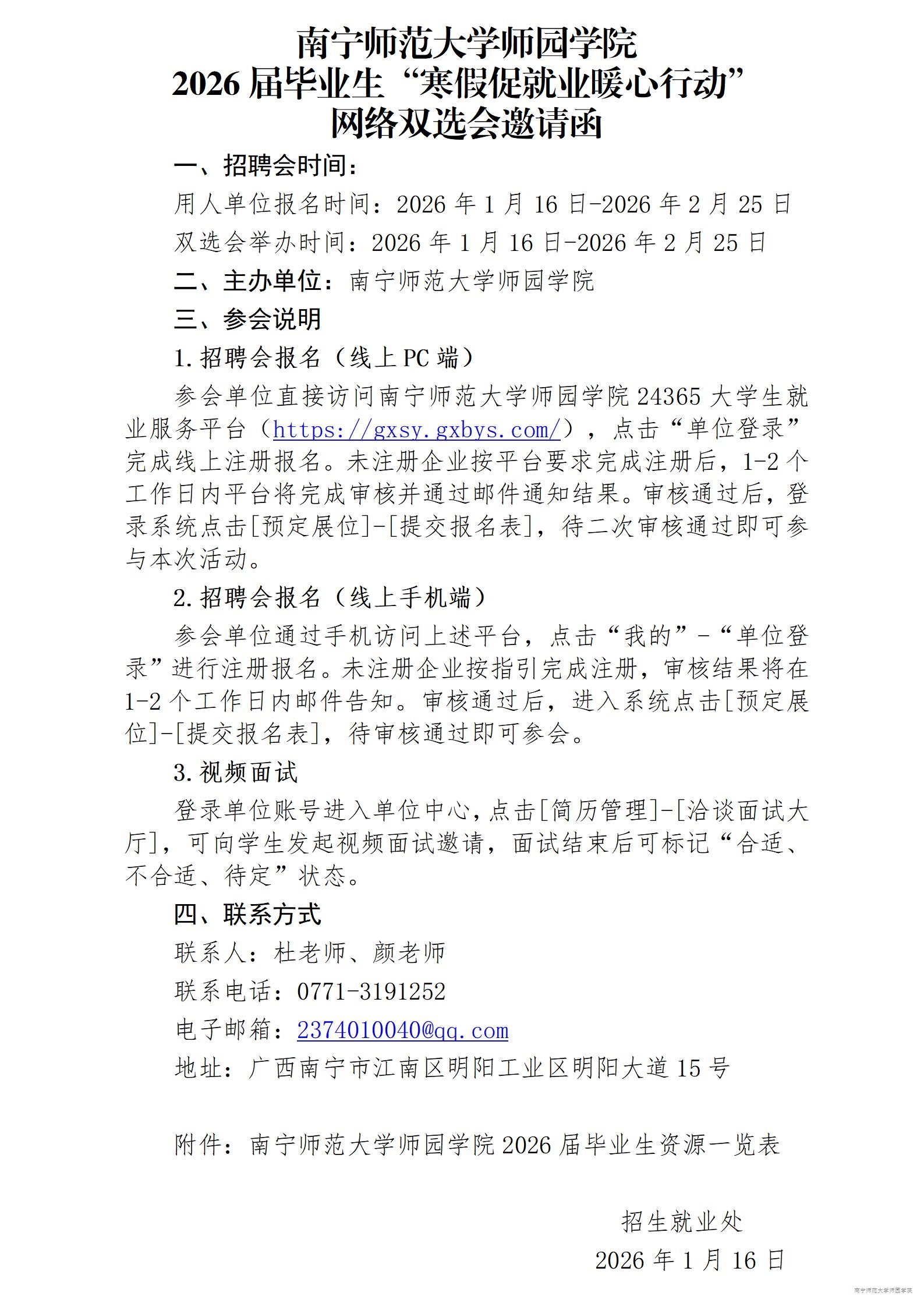 yabo鸭脖官网2026届毕业生“寒假促就业暖心行动”网络双选会邀请函
