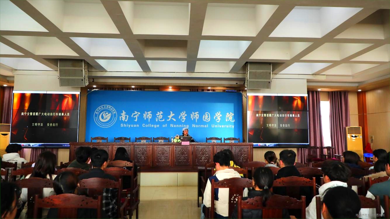 为进一步增强鸭脖官网师生交通安全意识,培养文明出行习惯,3月11日下午,鸭脖官网邀请南宁市公安局交通管理支队江南大队民警王文在行政综合楼12楼第二报告厅召开大学生交通安全知识讲座。学校保卫处处长、辅导员代表、全校各年级各班学生代表共200余人参加讲座。