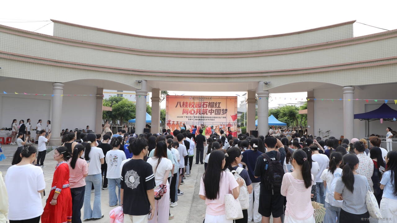 为贯彻落实习近平新时代中国特色社会主义思想,进一步铸牢中华民族共同体意识,推动民族团结进步扎根校园、深入人心,4月15日下午,鸭脖官网于师园欢乐广场举行“八桂校园石榴红,同心共筑中国梦”铸牢中华民族共同体意识民族文化广场秀暨第十二届社团文化节开幕式活动。学校统战部,校团委,校学生会全体成员,学生社团以及各系师生代表共同参加本次活动。