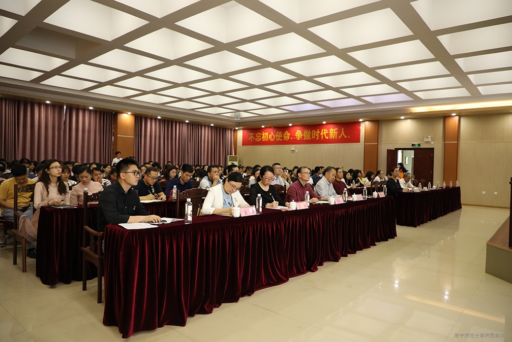 4月21日下午,我院在行政综合楼12楼第二报告厅举行“党史学习教育”专题宣讲报告会,南宁师范大学校长李传起应邀作题为“学好百年党史,汲取智慧力量,为党为国争光”专题宣讲报告。南宁师范大学副校长李兰荣,学院院长李珏,副院长陈积光、庞俊,教学总督导卢敏秋以及全体教职工党员、学生党员代表参加宣讲报告会。宣讲报告会由梁春贤书记主持。